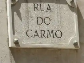 - Toponimia de Lisboa. «Rua do Carmo ( Santa Maria Maior )» (en portugués). Câmara Municipal de Lisboa. «Rua do Carmo que principiou por se chamar Rua Nova do Carmo, artéria rasgada depois do Terramoto de 1755 na encosta conventual, e que não corresponde a qualquer serventia antes existente».