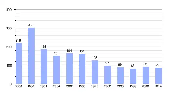 Los datos demográficos contemplados en este gráfico de la comuna de Saint-Nicolas-des-Laitiers[4] se han cogido de 1800 a 1999 de la página francesa EHESS/Cassini, y los demás datos de la página del INSEE.[5]