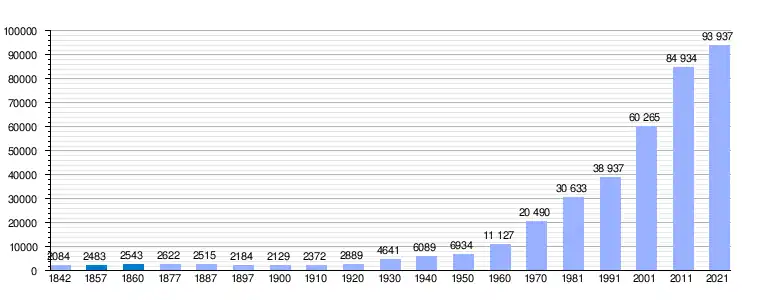 | Gráfica de evolución demográfica de Sant Cugat del Vallès[11] entre 1842 y 2021 |