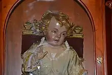 Se trata de una talla de vestir en madera policromada, obra anónima del primer tercio del siglo XVIII aproximadamente. La escultura nos muestra un Divino Niño sentado en trono de madera tallada en actitud de bendecir, es una pieza barroca en la que destaca la parte de la cabeza trabajada con esmero y delicadeza. Se pueden observar rasgos que preludian el rococó. La imagen llegó a la ciudad en 1732, procedente de Génova (Italia).[1] Fue una imagen que tuvo antaño una gran devoción en la ciudad, devoción que aún conserva.