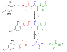 Existen diferentes reactivos que pueden ser usados para marcar el aminoácido terminal. Todos reaccionan con grupos amino y por lo tanto pueden enlazarse con aminas en las cadenas laterales como las de la lisina, por esta razón, es necesario ser cuidadoso en la interpretación de los cromatogramas para asegurar que se ha elegido el aminoácido correcto. Dos de los reactivos más comunes son el reactivo de Sanger (1-fluoro-2,4-dinitrobenceno) y derivados del dansilo. El fenilisotiocianato, reactivo usado en la degradación de Edman, también puede ser usado. Los reactivos producen derivados coloridos y solo se requiere análisis cualitativo por lo que los aminoácidos no necesitan ser eluidos de la columna de cromatografía, solo comparados con un estándar. Otra consideración es que, como la mayoría de los grupos amino reaccionan, la cromatografía de intercambio iónico no se puede usar. En su lugar, se usa cromatografía en capa fina y HPLC.