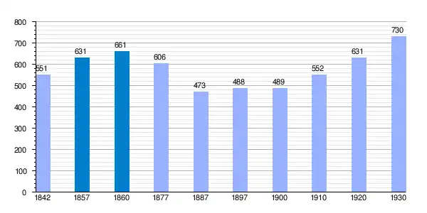 | Gráfica de evolución demográfica de Sentforas[2] entre 1842 y 1930 |