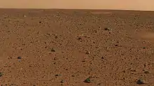 A la derecha la primera imagen en color de Marte tomada por la cámara panorámica. Es la imagen con resolución más alta tomada en la superficie de otro planeta. Hay 12 millones de pixeles en esta imagen, que tiene un tamaño extensión de 4.000 por 3.000 pixeles.