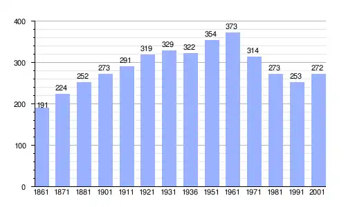 | Gráfica de evolución demográfica de Tinnura entre 1861 y 2001 |