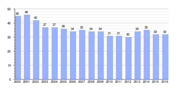 | Gráfica de evolución demográfica de Torre de Babia[2] entre 2000 y 2016 |