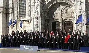 Este tratado tenía como objetivo mejorar el funcionamiento de la Unión Europea mediante la modificación del Tratado de Maastricht y el Tratado constitutivo de la Comunidad Europea (Tratado de Roma).[57] Algunas de las reformas más importantes que introdujo el Tratado de Lisboa fueron la reducción de las posibilidades de estancamiento en la toma de decisiones del Consejo de la Unión Europea mediante el voto por mayoría cualificada, un Parlamento Europeo con mayor peso mediante la extensión del procedimiento de decisión conjunta con el Consejo de la UE, la eliminación de los para entonces obsoletos tres pilares de la Unión Europea, y la creación de las figuras de Presidente del Consejo Europeo y Alto Representante de la Unión para Asuntos Exteriores y Política de Seguridad para dotar de una mayor coherencia y continuidad a las políticas de la UE.[58][59] El Tratado de Lisboa, que entró en vigor el 1 de diciembre de 2009 también hizo que la Carta de los Derechos Fundamentales de la Unión Europea fuese jurídicamente vinculante para los Estados miembros.[58]