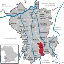 Se encuentra ubicado al oeste del estado, en la región de Suabia, a poca distancia de la frontera con el estado de Baden-Wurtemberg y al sur del río Danubio.