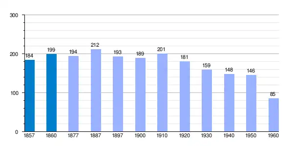 | Gráfica de evolución demográfica de Val de San García[3] entre 1857 y 1960 |