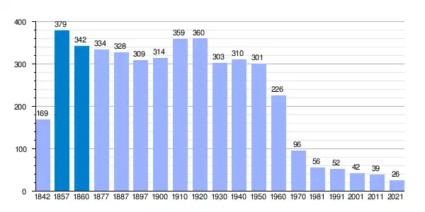 | Gráfica de evolución demográfica de Valhermoso[3] entre 1842 y 2021 |
