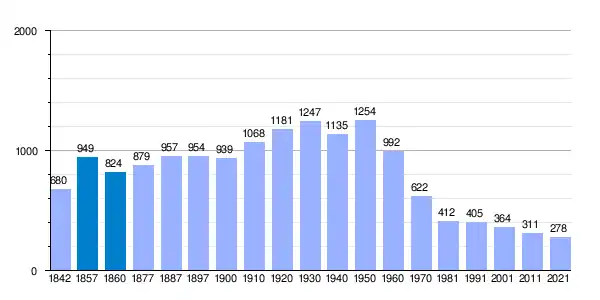 | Gráfica de evolución demográfica de Valverde de Burguillos[5] entre 1842 y 2021 |