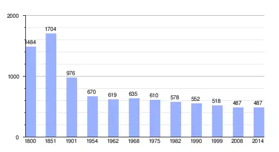 | Gráfica de evolución demográfica de Vengeons entre 1800 y 2014 |