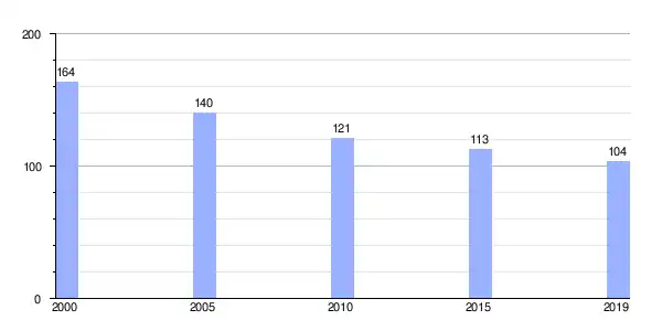 | Gráfica de evolución demográfica de Vilarello entre 2000 y 2019 |