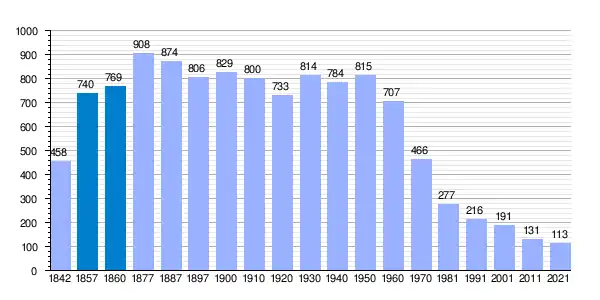| Gráfica de evolución demográfica de Villafranca Montes de Oca[2] entre 1842 y 2021 |