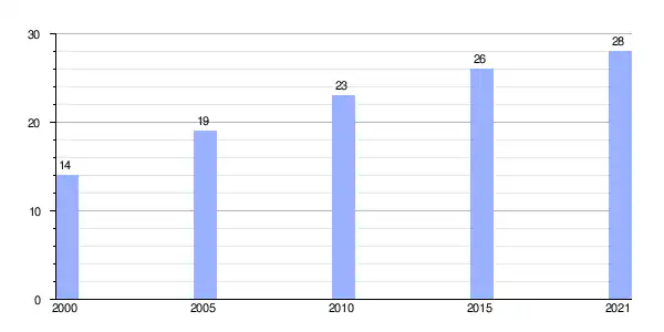 | Gráfica de evolución demográfica de Vilaescura (aldea) entre 2000 y 2021 |