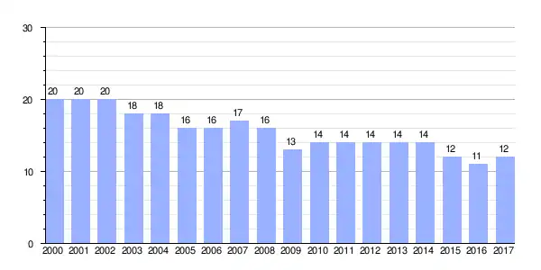 | Gráfica de evolución demográfica de Vivero[2] entre 2000 y 2017 |