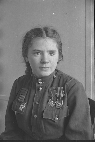 Por su heroísmo en esos días fue condecorada con la Orden de la Bandera Roja, su primera orden militar.[6] Luego sufrió muchas otras heridas mientras rescataba soldados, salvando a treinta y ocho heridos en la Batalla de Járkov. Después de recuperarse nuevamente, regresó a su unidad y vio un intenso combate en la lucha por una cabeza de puente en el Dniéper. Durante la Batalla del Dniéper, reemplazó a un miembro de la tripulación de una ametralladora que murió en combate, rechazando un contraataque alemán y matando a veinte combatientes enemigos. Por su acción, fue nominada para el título de Héroe de la Unión Soviética el 11 de mayo de 1944, pero la propuesta de premio se rebajó a la Orden de Lenin, que se le otorgó el 19 de septiembre de 1944.[7] Sin embargo, recibió publicidad de los medios soviéticos destacando sus logros y valentía.[1][5]