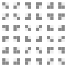 Las órbitas son {0, 10, 20}, {1, 9, 11, 19, 21, 29}, {2, 8, 12, 18, 22, 28}, {3, 7, 13, 17, 23, 27}, {4, 6, 14, 16, 24, 26}, y {5, 15, 25}. Los puntos dentro de una órbita son "equivalentes". Si se aplica un grupo de simetría para un patrón, entonces dentro de cada órbita el color en el gráfico es el mismo.