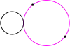 donde las barras verticales que contienen c1 − c2 representan la longitud de este vector diferencia, es decir, la norma euclidiana. Esta fórmula muestra que si dos vectores cuádricos X1 and X2 son ortogonales (perpendiculares) el uno al otro —esto es, si (X1|X2)= 0—, entonces sus circunferencias correspondientes son tangentes. En caso de que los dos signos s1 and s2 sean iguales (es decir, que las circunferencias tengan la misma «orientación»), las circunferencias son tangentes internamente, la distancia entre sus centros es igual a la diferencia entre los radios: