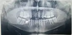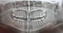 La anodoncia es una enfermedad congénita rara que se caracteriza por la ausencia total de dientes.[1] Puede afectar tanto a la dentición temporal como a la permanente y suele asociarse a un trastorno generalizado tal como la displasia ectodérmica hereditaria.[2][3]