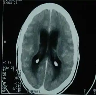 ![]() TAC del cerebro mostrando una meningitis tuberculosa. | ||
