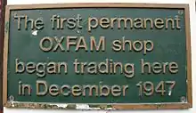 Oxfam tiene muchas tiendas en todo el mundo, las cuales venden artículos del comercio justos y que son donados. Su primera tienda de caridad fue abierta en 1948,[19] aunque las ventas comenzaron hasta 1947. Los ingresos de estas tiendas son generalmente utilizados para ayudar a otras organizaciones benéficas o para promover los esfuerzos de ayuda de Oxfam alrededor del mundo.