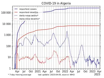 - ↑ «Argelia - COVID-19 - Crisis del coronavirus 2022». datosmacro.com. Consultado el 22 de febrero de 2022.