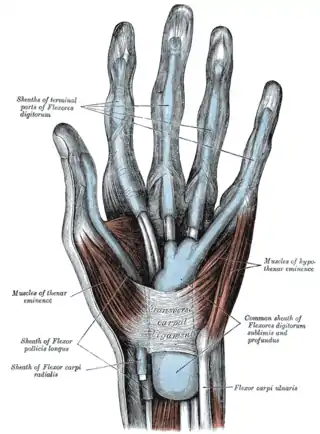 Vainas tendinosas de la muñeca y la palma de la mano.