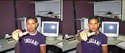 La estereoscopía es cualquier técnica capaz de recoger información visual tridimensional y/o crear la ilusión de profundidad mediante una imagen estereográfica, un estereograma o una imagen 3D (tridimensional). La ilusión de la profundidad en una fotografía, película, u otra imagen bidimensional se crea presentando una imagen ligeramente diferente para cada ojo, como ocurre en nuestra forma habitual de ver. Muchas pantallas 3D usan este método para transmitir imágenes. Fue inventado por Sir Charles Wheatstone en 1840.[1]