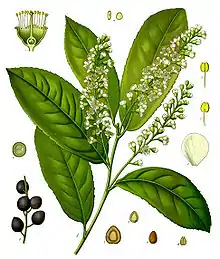 Del latín laurocerasus ("cerezo") y el prefijo laurel por la forma de las hojas afines al laurel.